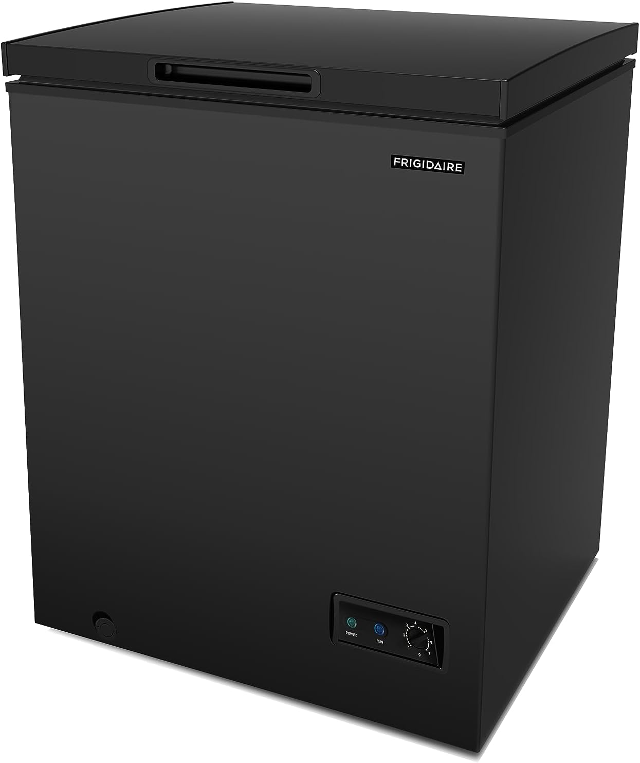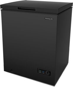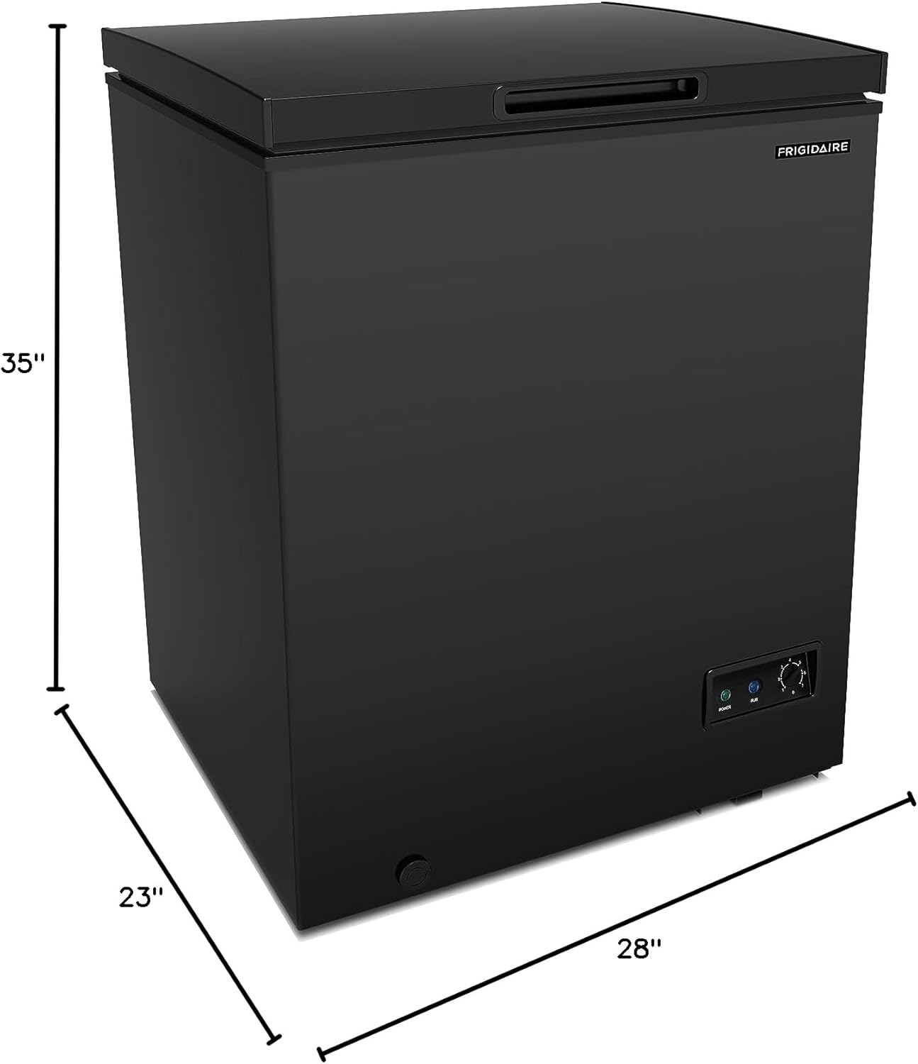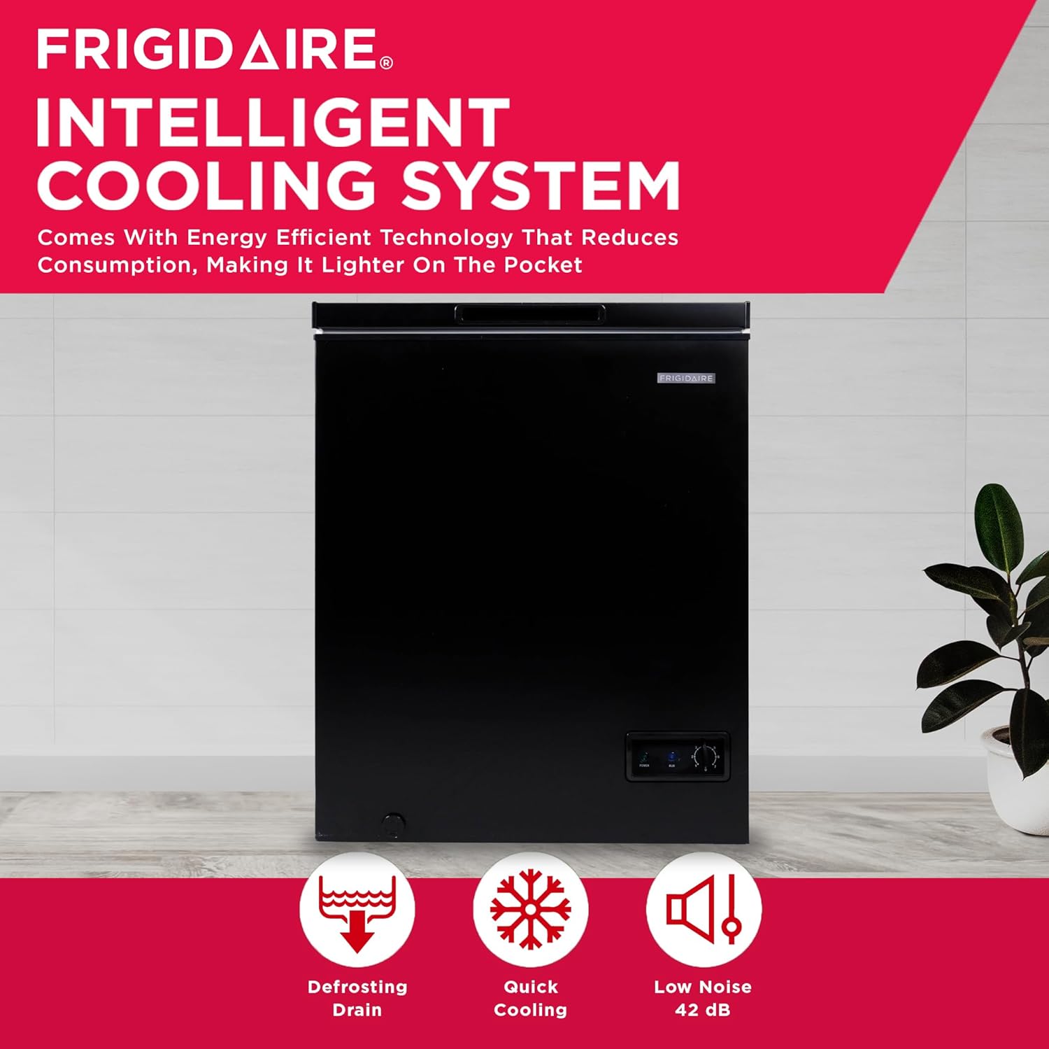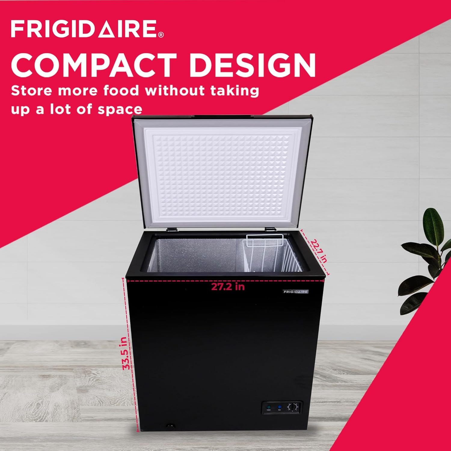 FRIGIDAIRE EFRF5003-BLACK Chest Deep Freezer-Garage-Ready, 5.0 Cu. Ft. Capacity, Black-Adjustable Thermostat-Removable Vinyl Coated Wire Basket-Easy Defrost Drain
