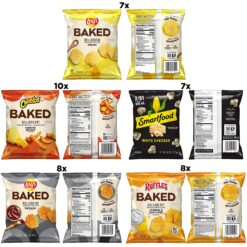 New assortment includes 40 single serve bags: (10) Baked Cheetos Crunchy, (7) Baked Lay’s Classic, (8) Baked Lay’s Barbecue, (8) Baked Ruffles Cheddar Sour Cream, and (7) Smartfood White Cheddar Popcorn