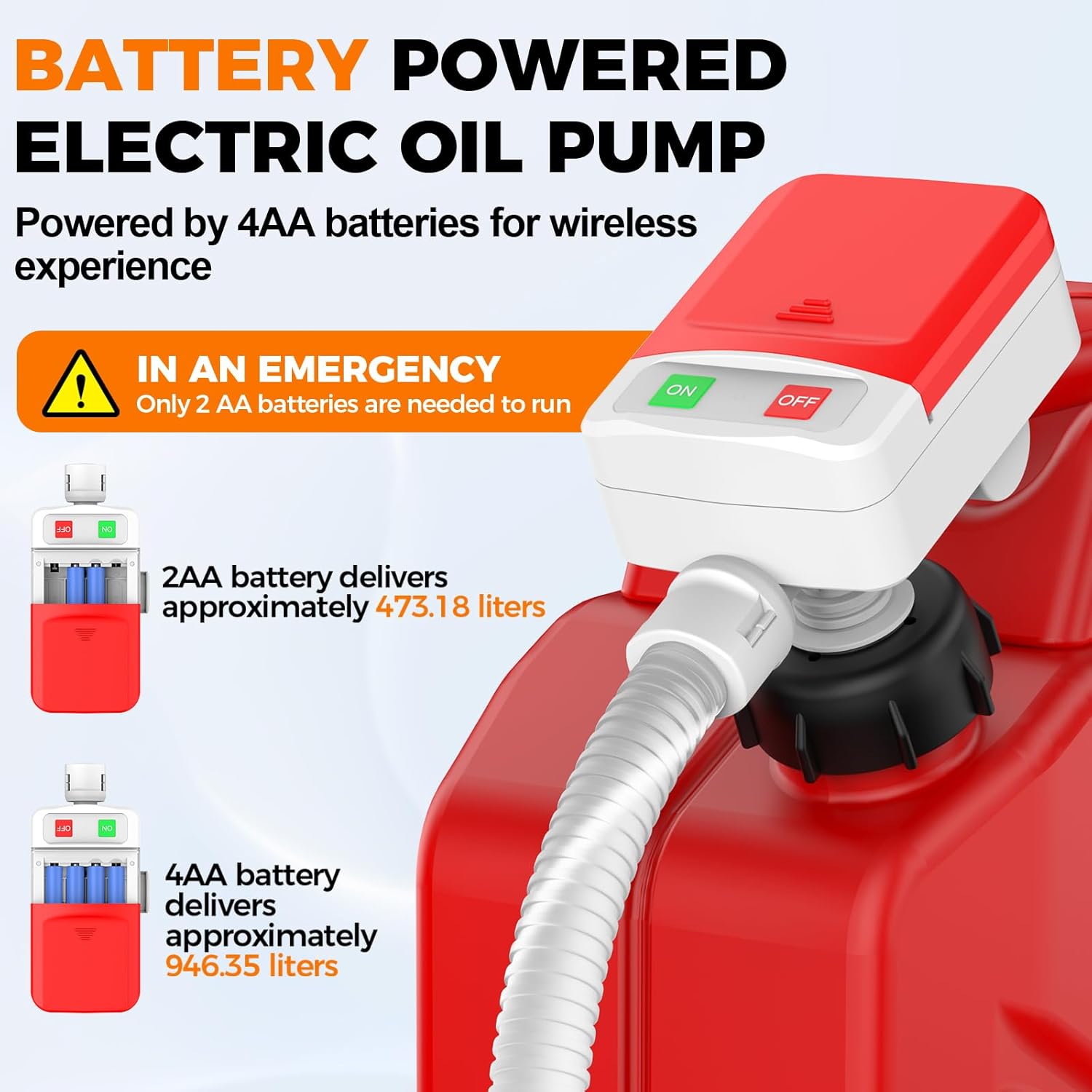 - Battery Powered for Portability: The fuel transfer pump battery powered design uses 4 AA batteries (recommended) or 2 AA batteries in emergencies (Note: AA batteries are not included). This battery fuel transfer pump offers flexibility and portability, allowing for use anywhere without the need for power cords or electrical outlets, perfect for on-the-go fueling.
