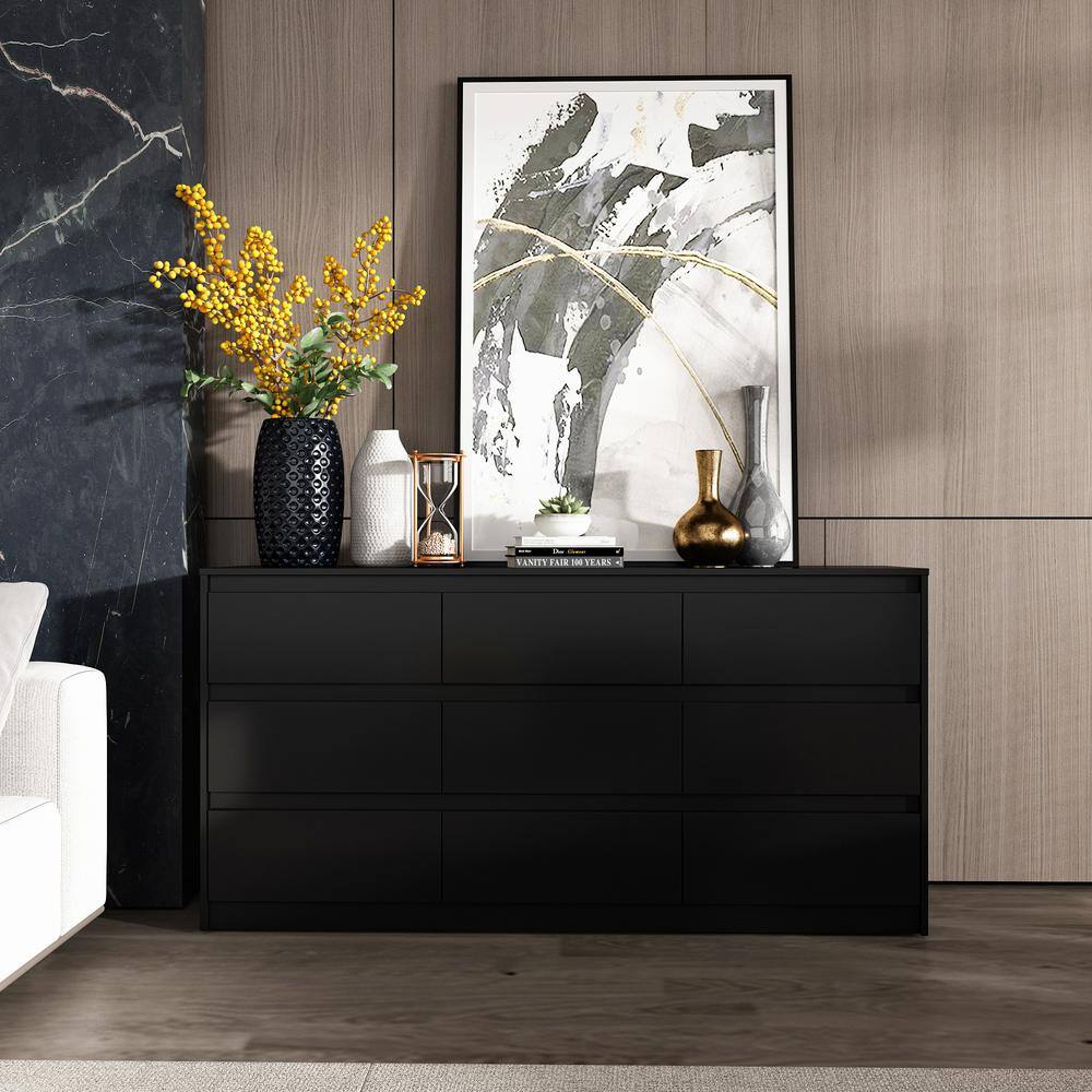 FUFU&GAGA KF250020-03 9-Drawer Black Wood Dresser Modern Style 31.5 in. H x 63 in. W x 15.7 in. D