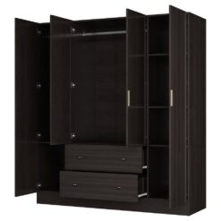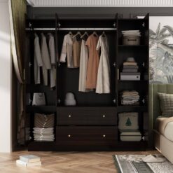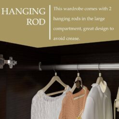 - Wardrobe is really multifunctional for storing your household items in your bedroom the left cabinet is specially for storing your clothing, clothing rod is ready to hang your coats, suits and shirts the right one features 4-tier shelves mainly, which make it possible to store bedding or household stuff