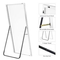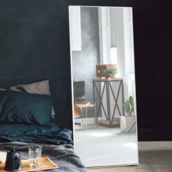 This full-length mirror is wide enough and tall enough to give a total view of you! It’s a large rectangular silhouette, and it’s made with an aluminum alloy frame in a neutral finish. You could easily mount it behind the door or a bathroom wall. It also has a tilt bar which could transform it into a free-standing mirror. Plus, looking in the mirror is a great way to check your appearance. The mirror also makes your room look bigger.