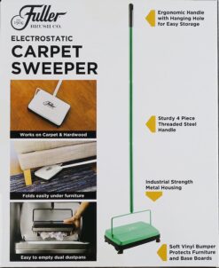 Fuller Brush 17029 Electrostatic Carpet & Floor Sweeper – 9″ Cleaning Path – Lightweight – Ideal for Crumby Messes – Works On Carpets & Hard Floor Surfaces – Fresh Mint