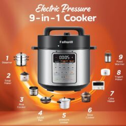 Fullwill Electric Pressure Cooker Uni 6qt, 9-in-1 Multi-Functional Slow Cooker, Rice Cooker, Yogurt Maker, Cake Maker, Sauté Pan, Steamer, Food Warmer, Soup Maker