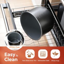 - PFOA-Free: Health-conscious design with a non-stick, PFOA-free inner pot for easy cooking and cleaning without harmful chemicals.