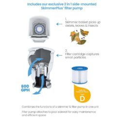 - Includes a 110 to 120-volt SkimmerPlus SFX660 filter pump with GFCI and type I filter cartridge for easy maintenance