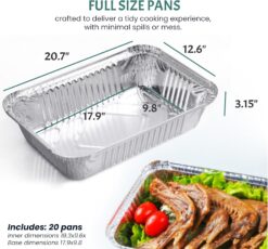 FUNSTITUTION Full Size Large Aluminum Foil Pans (20 Pack) – 21×13 Tin Foil Pans with High Heat Conductivity – Disposable Cookware For Baking, Grilling, Cooking, Storing, Prepping (21×13)