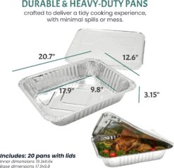 - 𝗨𝗽𝗴𝗿𝗮𝗱𝗲 𝗬𝗼𝘂𝗿 𝗖𝗼𝗼𝗸𝗶𝗻𝗴 𝗚𝗮𝗺𝗲 – With our lightweight and durable tin foil baking pans and disposable pans made of premium quality thick aluminum foil with high side walls, ensuring a mess-free and enjoyable cooking experience every time!
