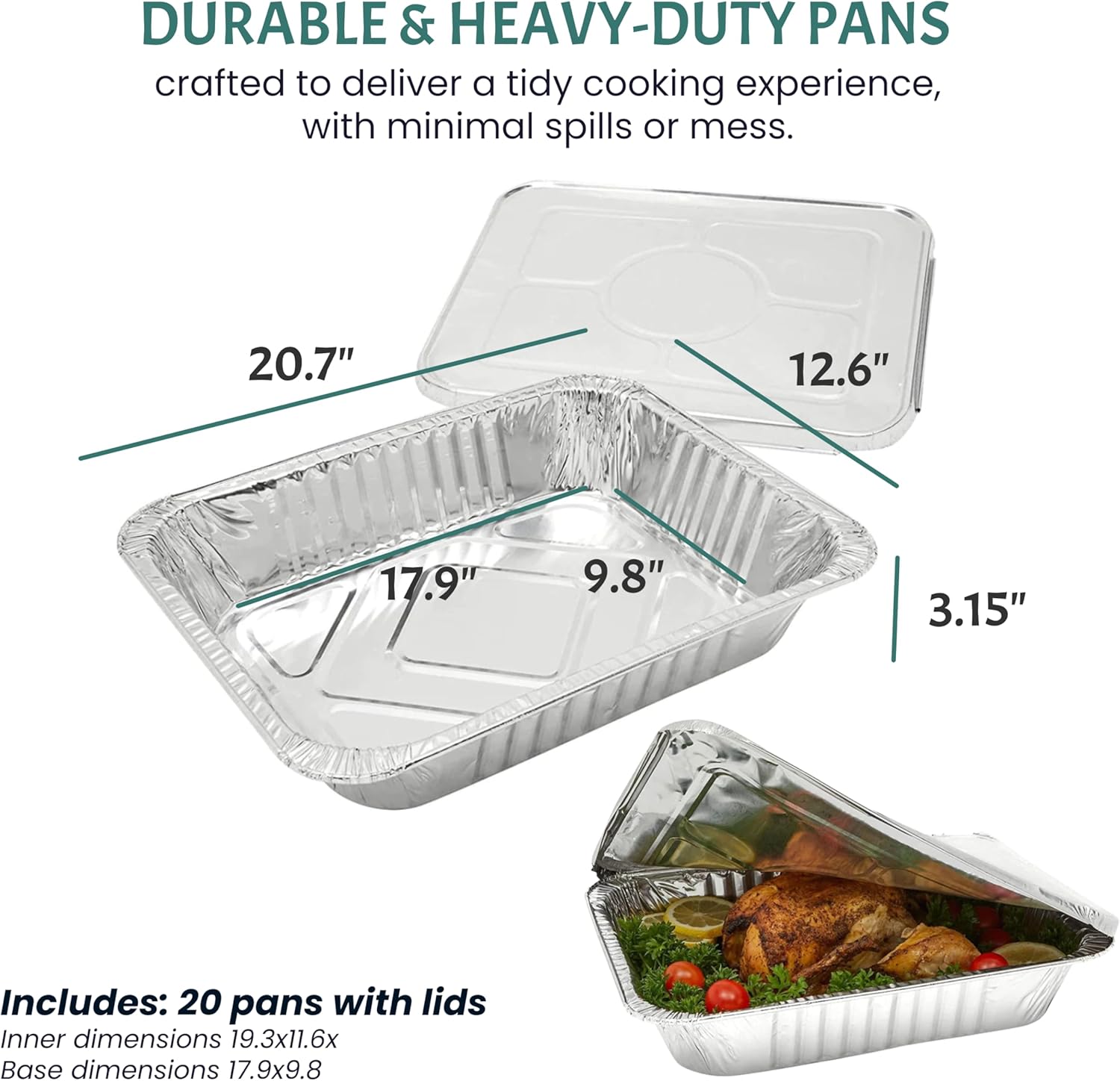 FUNSTITUTION Full Size Large Aluminum Foil Pans (20 Pack) – Full Size Large 21×13 Tin Foil Pans with High Heat Conductivity – Disposable Cookware For Baking, Grilling, Cooking, Storing, Prepping