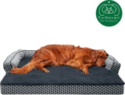 FurHaven Comfy Couch Orthopedic Bolster Dog Bed w/Removable Cover – Diamond Gray, Jumbo