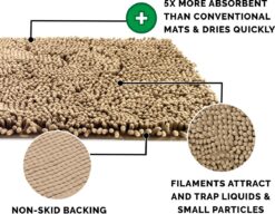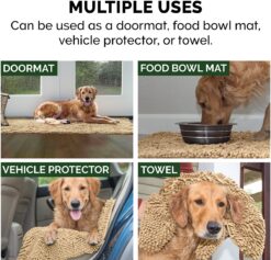 FurHaven Muddy Paws Towel & Shammy Dog Mat – Muddy Paws Absorbent Chenille Shammy Bath Towel and Food Mat Rug, Sand (Tan), Jumbo Plus