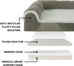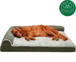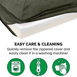FurHaven Two-Tone Deluxe Chaise Memory Top Cat & Dog Bed w/Removable Cover – Dark Sage, Jumbo