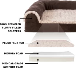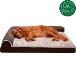 FurHaven Two-Tone Deluxe Chaise Memory Top Cat & Dog Bed w/Removable Cover – Espresso, Jumb