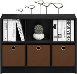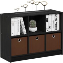 Furinno Basic 3×2 Cube Storage Bookcase Organizer with Bins, Americano/Brown