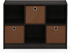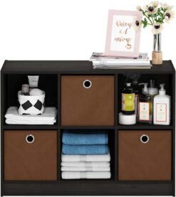Furinno Basic 3×2 Cube Storage Bookcase Organizer with Bins, Espresso/Brown