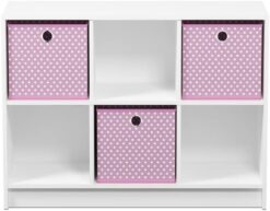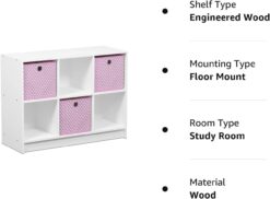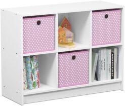 Furinno Basic 3×2 Cube Storage Bookcase Organizer with Bins, White/Light Pink