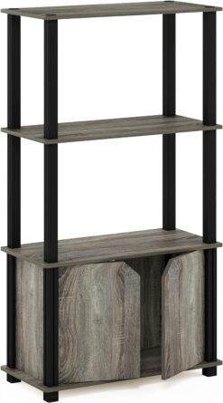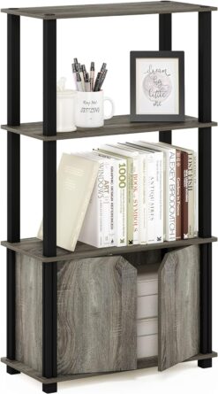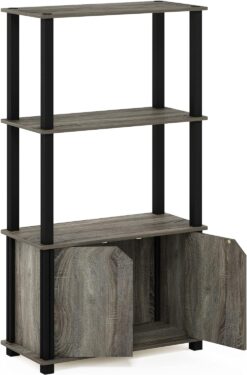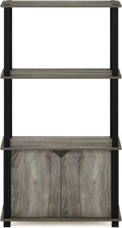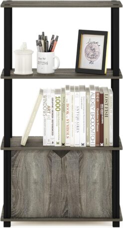 Furinno Brahms 4-Tier Multipurpose Bookcase/Bookshelf/Display Shelf/Display Rack with Door, French Oak Grey/Black