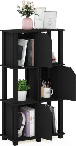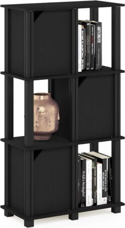 FURINNO Brahms Storage Shelf, 4-Tier, Black Oak/Black