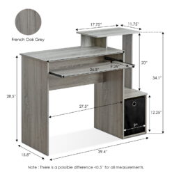Furinno Econ Multipurpose Home Office Computer Writing Desk with Bin, French Oak Grey