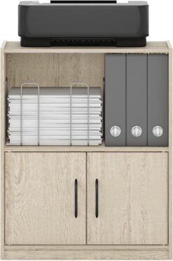 Furinno Gruen 2-Tier Open Shelf Bookcase with 2 Doors Storage Cabinet, Metropolitan Pine