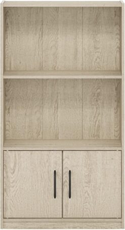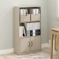 Furinno Gruen 3-Tier Open Shelf Bookcase with 2 Doors Storage Cabinet, Metropolitan Pine