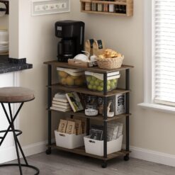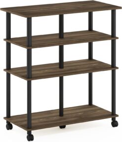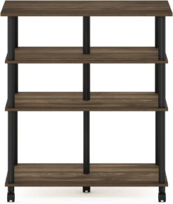 Furinno Helena 4-Tier Multifunction Rolling Open Shelves Storage Cart Organizer, Columbia Walnut/Black