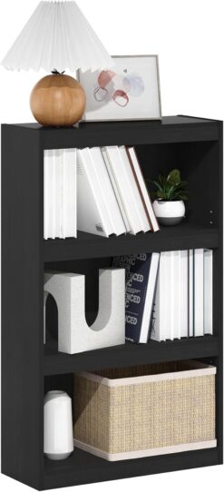 Furinno Jaya Enhanced Home Bookcase 3-Tier Adjustable Bookshelf, Blackwood