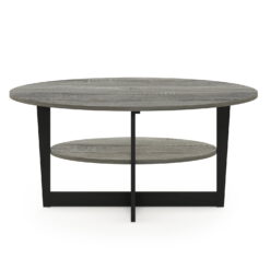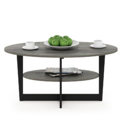 Furinno JAYA Oval Coffee Table, French Oak Grey/Black