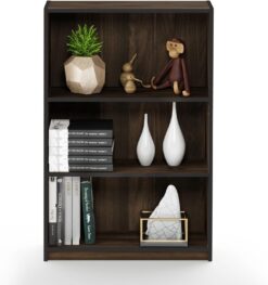 FURINNO JAYA Simple Home 3-Tier Adjustable Shelf Bookcase, Columbia Walnut