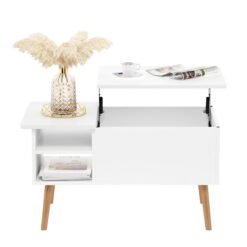 Furinno Jensen Lift Top Coffee Table With Wooden Leg, Solid White