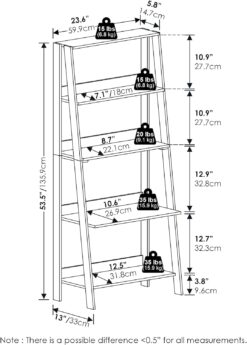 - Stylish and modern bookshelf with a ladder design, this bookshelf features 5 tiers to accommodate plenty of your book collections.