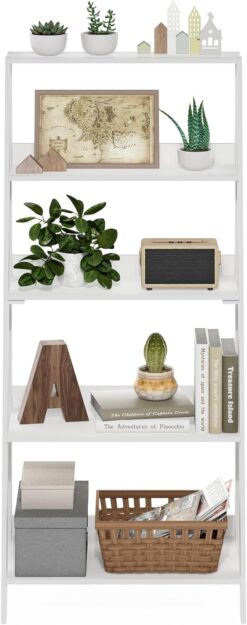 Furinno Ladder Bookcase Display Shelf, 5-Tier, White