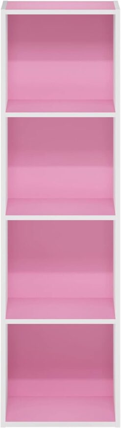 Furinno Luder Bookcase / Book / Storage, 4-Tier Cube, Pink/White