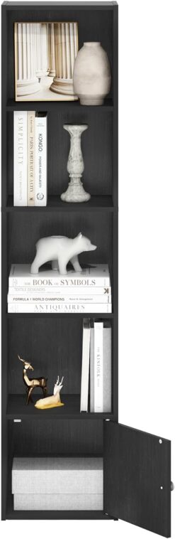 Furinno Luder Shelf Bookcase with 1 Door Storage Cabinet, Blackwood (5-Cube with Cabinet)