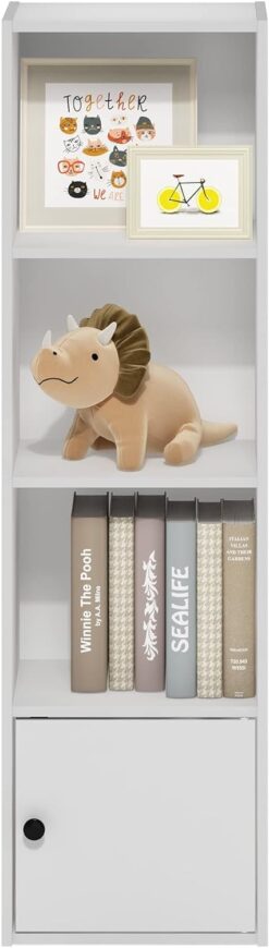 Furinno Luder Shelf Bookcase with 1 Door Storage Cabinet, White (4-Cube with Cabinet)