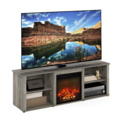 Furinno Montale 70 Inch TV Stand with Fireplace, French Oak Grey