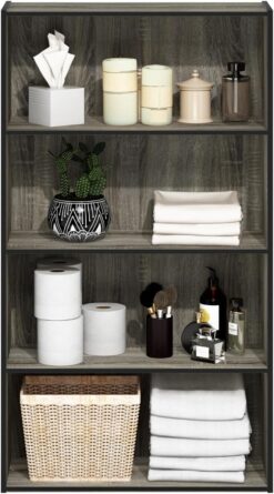 Furinno Pasir 4 Tier Open Shelf, French Oak Grey