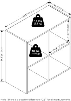 Furinno Pelli Cubic Storage Cabinet, 2×2, build with 4 individual shelves with ample space for personal items, great for storing and displaying items such as artworks, toys, books, folding clothes or other household necessities. It is made out of medium density fiber board offering great durabiliy and strength, increasing product life spand. They come in multiple colors, Espresso and French Oak Grey, therefore it is customizable to liking. The cabinet is designed to fit perfectly in rooms and utilizing storage place to its maximum potential. The assembly process is made easy with the provided parts and hardware. Assembly instructions are revised repeatedly to ensure that it is clear to read, simple to understand and safe to work. Care instruction: wipe clean with clean damped cloth and avoid using harsh chemical to prevent damage to the furniture. All the pictures are for illustration purposes only; decor items are not included in the set.