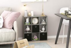 - Petite size 9-cube organizer with 3 bins, suitable for small rooms