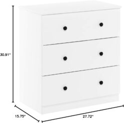 Furinno Tidur Simple Design Dresser, 3-Drawer Knob, Solid White