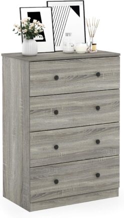 Furinno Tidur Simple Design Dresser, 4-Tier Knob, French Oak Grey