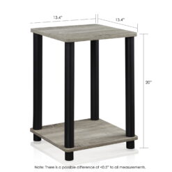 A French gray finish lends a hint of rustic charm to the Furinno Turn-N-Tube End Table, modernized by rounded metal legs in a rich black hue. This versatile end table features a lower shelf for your favorite novels or magazines, keeping your home clutter-free. Crafted of engineered, MDF wood, this end table resists warping and splintering for a chic, fresh look that lasts. At only 4.4 pounds, it’s easy to move this accent table from place to place.