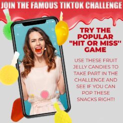 JOIN THE FAMOUS TIKTOK CHALLENGE – Want to try the popular “Hit or Miss” game? Use these fruit jelly candies to take part in the challenge and see if you can pop these snacks right! - DELICIOUS GIFT FOR SWEETS LOVERS – Know someone who loves candies? Give them a pack of our delicious jelly fruit candies and satisfy their sweet tooth. Just choose from our 297g, 825g, and 1320g packs!