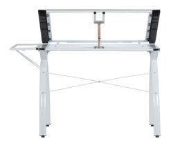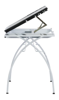 The perfect multi-functional contemporary table: Studio Designs’ Futura Craft Station with Folding Shelf is great for drafting, drawing, or crafting on its large tempered safety-glass work surface. Its main work surface consists of a glass top that can also be used as a light table, and can adjust . It also includes a flip up side shelf for that additional flat workspace. Other features include a large pencil drawer, and removable side trays for supplies. A pencil ledge slides up and locks into place if you’d rather keep pens, pencils, or brushes on the table top. Constructed of heavy gauge, powder-coated steel for durability and floor levelers for stability.