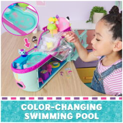 - CAT-TASTIC TOY CRUISE SHIP: Set sail on the pretend seas with Gabby and MerCat! This awesome 18-piece playset features a pool with a smoothie bar, a disco with a light-up disco ball and a photo booth!