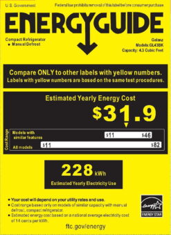 Enjoy the convenience of keeping your favorite drinks and food cold with the Galanz 4.3 cu ft Black Single-Door Mini Fridge. It features two and a half glass shelves and a crisper drawer so there is plenty of room to store food. The door even holds 2-liter bottles and has a convenient 8-can dispenser. It has 2 adjustable leveling feet for stability on uneven floors. The adjustable thermostat allows you to control the temperature the way you like it. There is a full-width chiller compartment and an interior light for greater visibility.