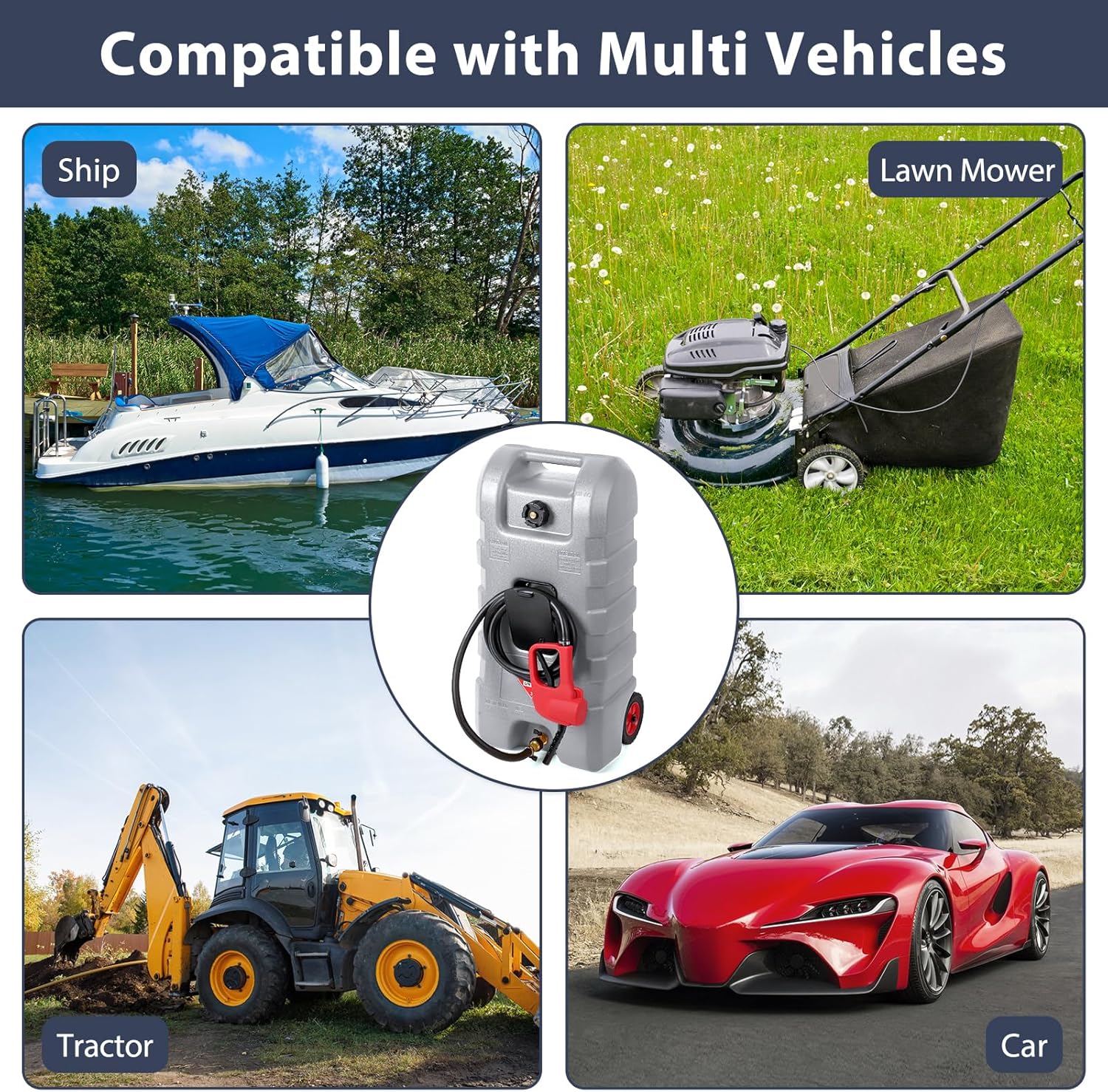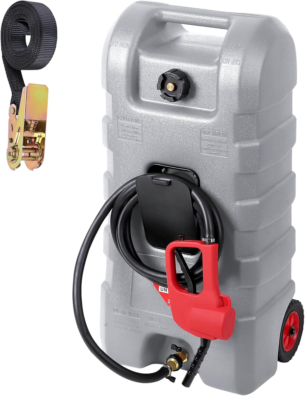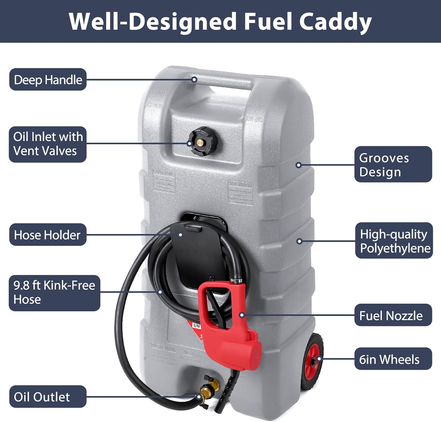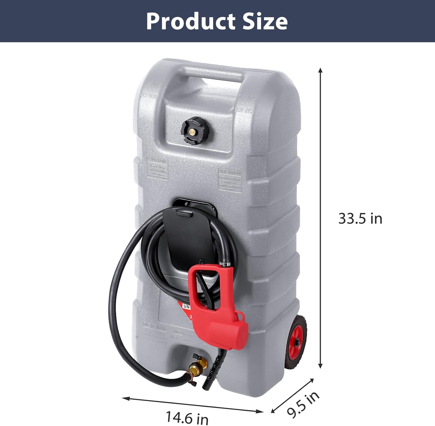 GAOMON Fuel Caddy, 15 Gallon Portable Gas Fuel Tank Container with LE Fluid Transfer Siphon Pump and 10ft. Delivery Hose, Diesel Storage Can On-Wheels for Cars, Lawn Mowers, ATVs, Boats, Gray