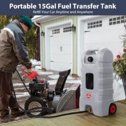 GAOMON Fuel Caddy, 15 Gallon Portable Gas Fuel Tank Container with LE Fluid Transfer Siphon Pump and 10ft. Delivery Hose, Diesel Storage Can On-Wheels for Cars, Lawn Mowers, ATVs, Boats, Gray