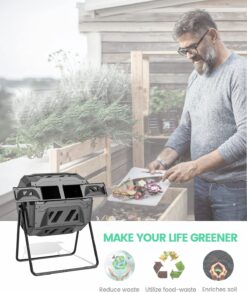 - CONVENIENT LOADING HEIGHT – Enough height to put a cart under this compost tumbler.Easy to turn barrel, waste mixed easily, fast batch composting.