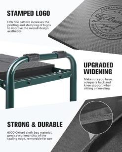 Garden Kneeler and Seat Heavy Duty, Foldable Gardening Stool – 2024 Upgraded Widened to 10″ Stable Wear-resistant Prevent Knee and Back Pain, Beautiful Logo high-end 2 Large Tool Bags Gift for Women, Green